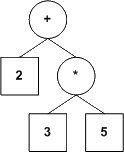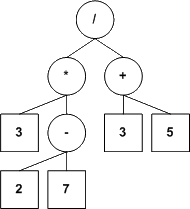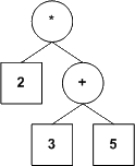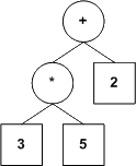 Dans nos arbres, une feuille contiendra une valeur numérique et tout noeud qui n'est pas une feuille contiendra un opérateur (nos opérateurs seront tous binaires, mais ce n'est pas une exigence du modèle; nous voulons simplement garder le tout le plus simple possible).