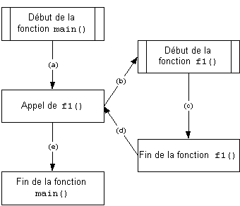 Supposons une procédure main() qui appelle un sous-programme[3] f1() . L'exécution du programme suivra les étapes suivantes :