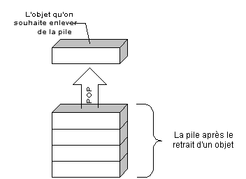 Tout processus possède une pile d'exécution. Les opérations en assembleur permettant d'y empiler et d'en dépiler des données sont respectivement push et pop.