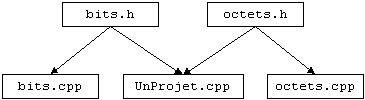 Remarquez que bits.h est inclus par bits.cpp et par UnProjet.cpp. Ceci signifie que le texte de bits.h fera partie à la fois de bits.cpp et de UnProjet.cpp.
