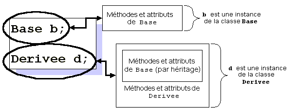 Ce principe est implanté en C++ de façon riche et complexe – trop, en fait, pour notre petite discussion du polymorphisme. Nous restreindrons, dans ce qui suit, notre approche à l'héritage dit public.